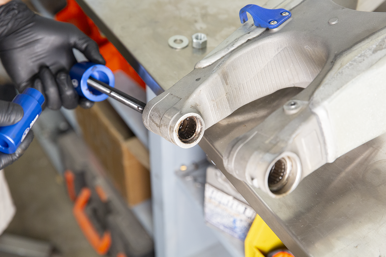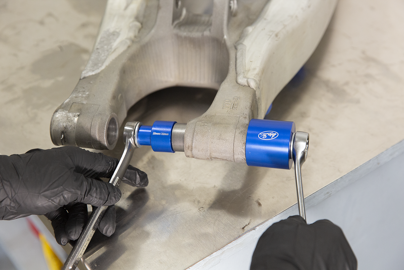 - Designed for quick and easy removal and precise installation of suspension linkage and swingarm pivot bearings