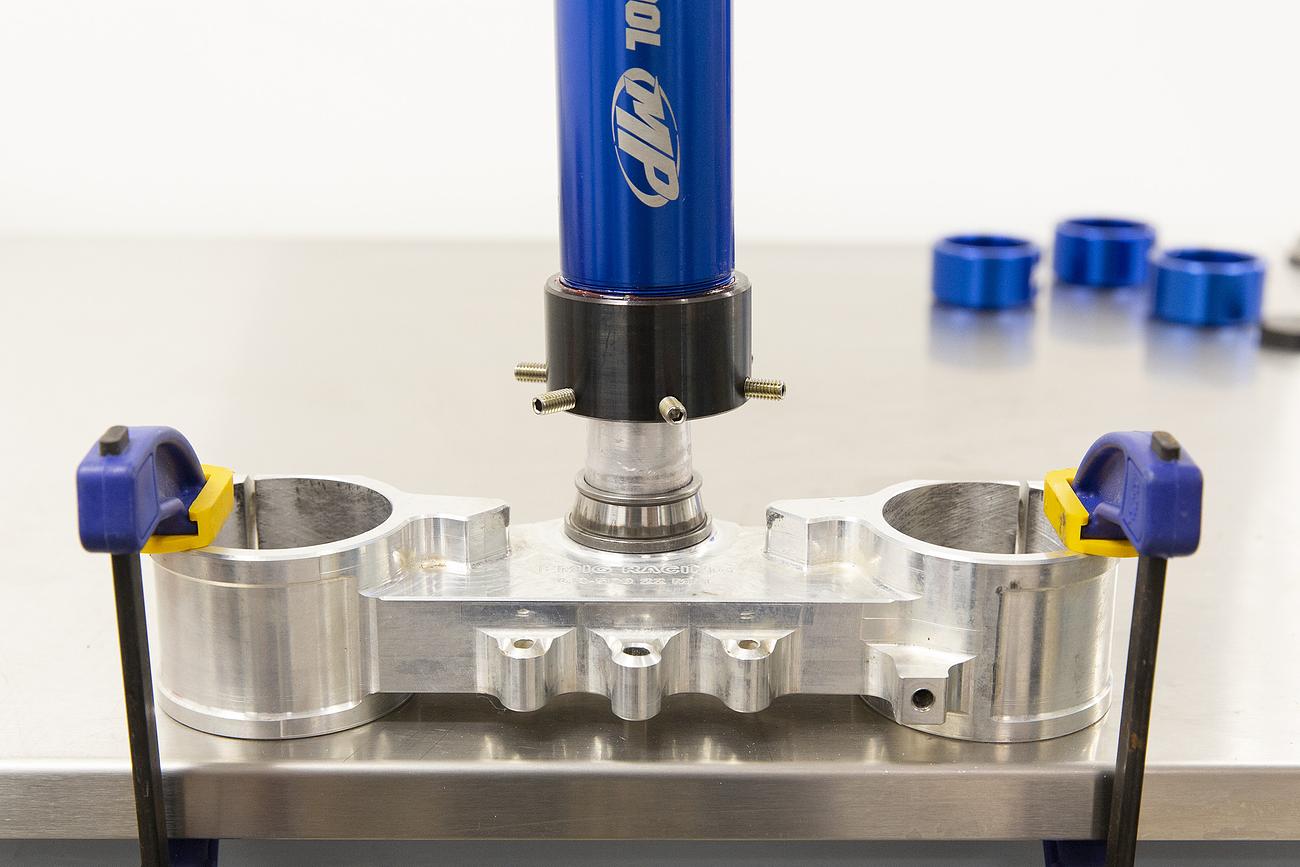 - Removes and installs tapered roller bearing at base of steering stem