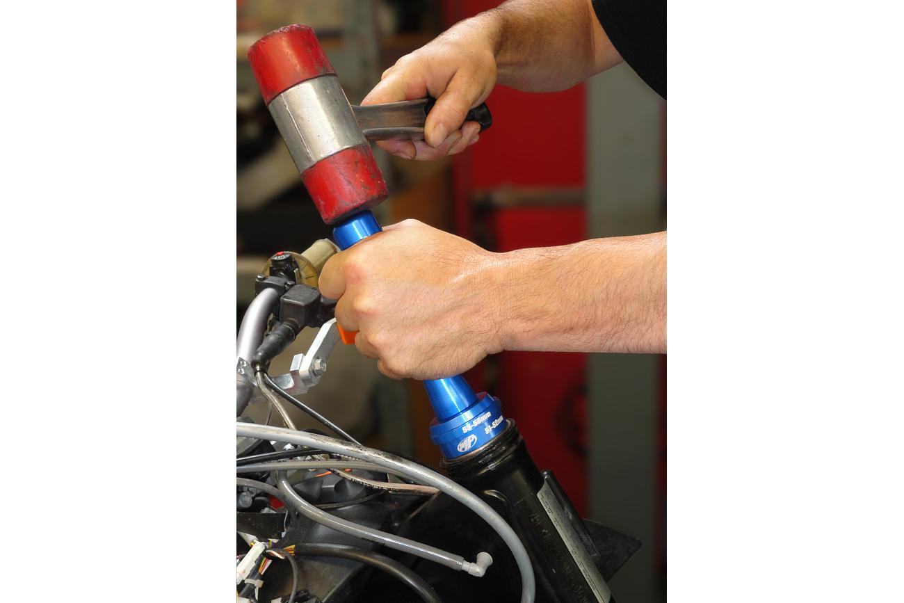 - Safely installs the tapered bearing race in the frame
