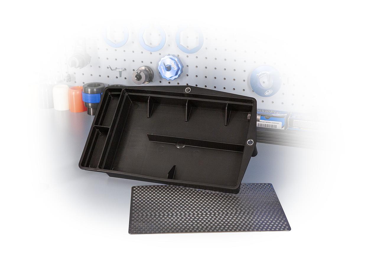 - Movable fluid catch pan with mesh insert, and threaded drain bung