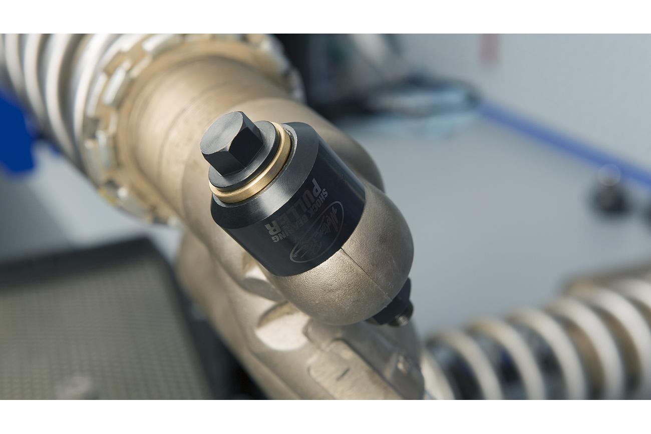 - Safely removes and installs the upper spherical bearing on rear shocks