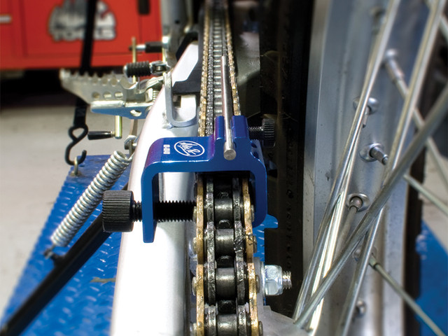 The Motion Pro Chain Alignment Tool MSRP is less expensive than replacing a prematurely worn out chain and sprockets, and will make sure your rear wheel is properly in line.